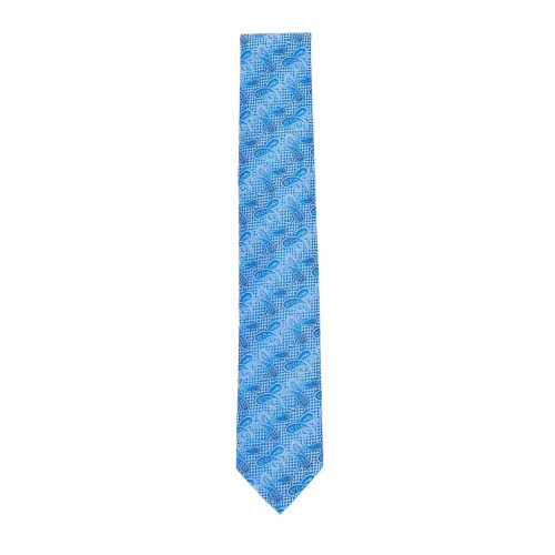 Этот галстук - отличный способ добавить яркий акцент в образ, не перегружая его. Нежный голубой оттенок с узором в стиле пейсли выглядит свежо и стильно, идеально подходя как для офиса, так и для более торжественных случаев. Он хорошо сочетается с классической белой или светло-голубой рубашкой и тёмным костюмом.